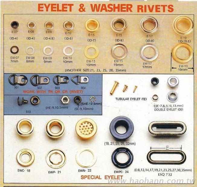 多樣設計:合漢企業股份有限公司提供雞眼扣|企眼扣|金屬雞眼扣|鞋眼扣(一系列)的多樣化設計